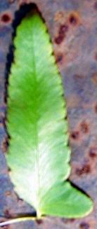 The fronds of the Christmas fern are erect through the summer, declining in the fall to become recumbent and dying after the first hard frost. They stay in this position, holding the leaf litter and duff in place and are therefore effective in erosion control. The Christmas fern is dimorphic, having two different kinds of fronds on the same plant. The smaller fronds are sterile. The larger fronds are sterile on the lower two thirds and fertile only on the upper third; due to the constriction of the sori, the upper, fertile fronds appear stunted. The Christmas fern was used by several Indian tribes for medicinal purposes. The root was made into a tea to treat chills and fever and to induce vomiting to treat stomach aches. A poultice was made from the roots to treat rheumatism. |