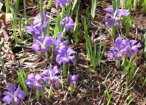 Common Name: Dwarf Iris, Vernal Iris Scientific Name: Iris verna (The genus name is from the colors of the flower appearing to be as a rainbow, or iris; the species name is from the Latin vernalus, belonging to spring from which the adjective vernal for spring is also derived)
