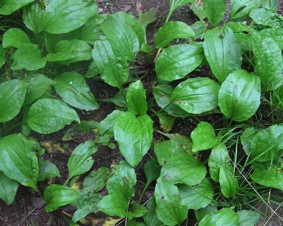 Common Name: Common Plantain, Broadleaf plantain, Wayside plantain, White man's foot, Englishman's foot, Snakeweed, Waybread, Cart track plant, Dog's ribs, Podoroshnik (Russia), Slan-lus (Scotland), Breitwegerich (Germany) - Plantain is from the Old English word "plantane" which is derived from the genus name Plantago.