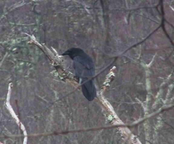 Common Name: Raven, Common Raven, Northern Raven- Derives from Old English in the form of hr�fn which is from the Germanic hraben. The harsh sounding root word is attributed to the harsh croaking noises for which the raven is noted.